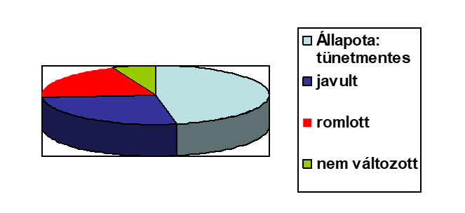 Állapota tünetmentes: 46 %, javult: 26 %, romlott: 20%, nem változott: 8%